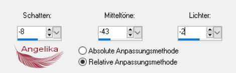 03) Anpassen / Helligkeit und Kontrast / Lichter/Mitteltöne/Helligkeit:
