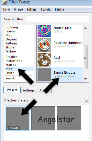 Forge 2. Select Misc/Simple Emboss: