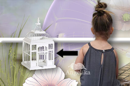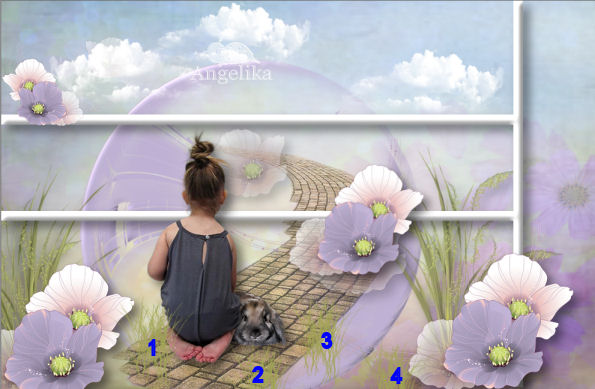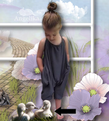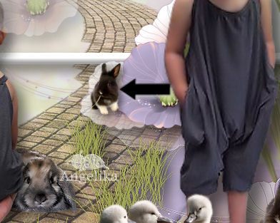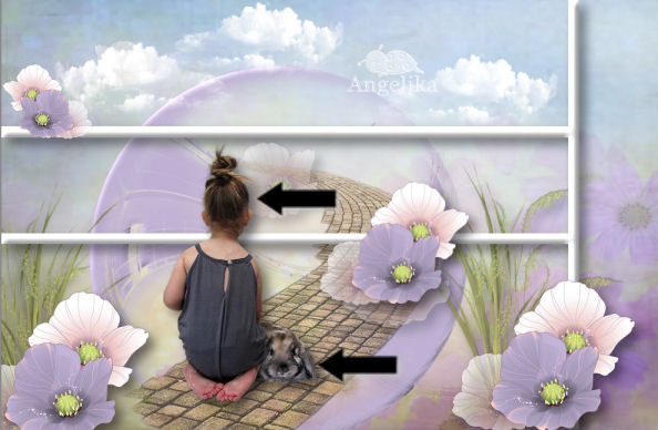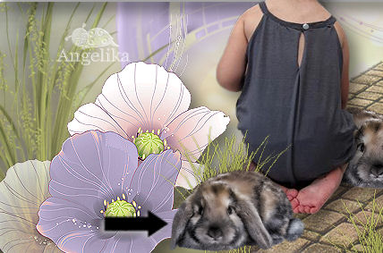 ordne nun das Mädchen Tube und den Hasen so an
