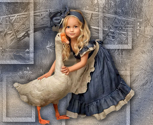 16) Öffne das Tube: FarmGirl.png Bearbeiten / Kopieren Bearbeiten / Einfügen als neue Ebene Effekte / 3D Effekte / Schlagschatten: -10 / -10 / 50 / 25 / Farbe: schwarz Anpassen / Schärfe / Scharfzeichnen verschiebe es wie ich: