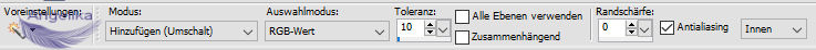 Auswahlwerkzeug, das auf Rechteck / Ersetzen / Randschärfe 0