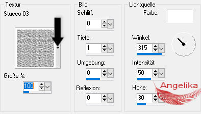aus dem Dropdown-Pfeil die Textur Stucco 03 aus: