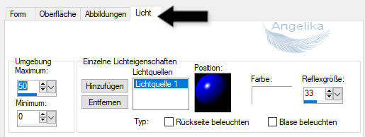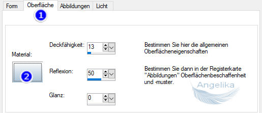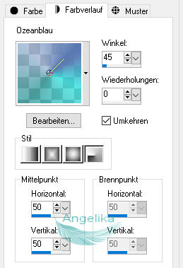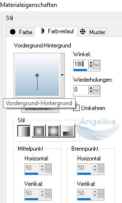 Bei der Oberfläche stellst du den Farbverlauf ein und den