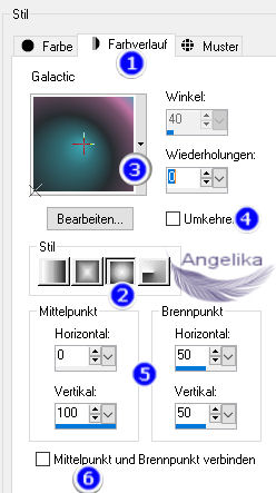 Materialpalette den Farbverlauf in Galactic.PspGradient: